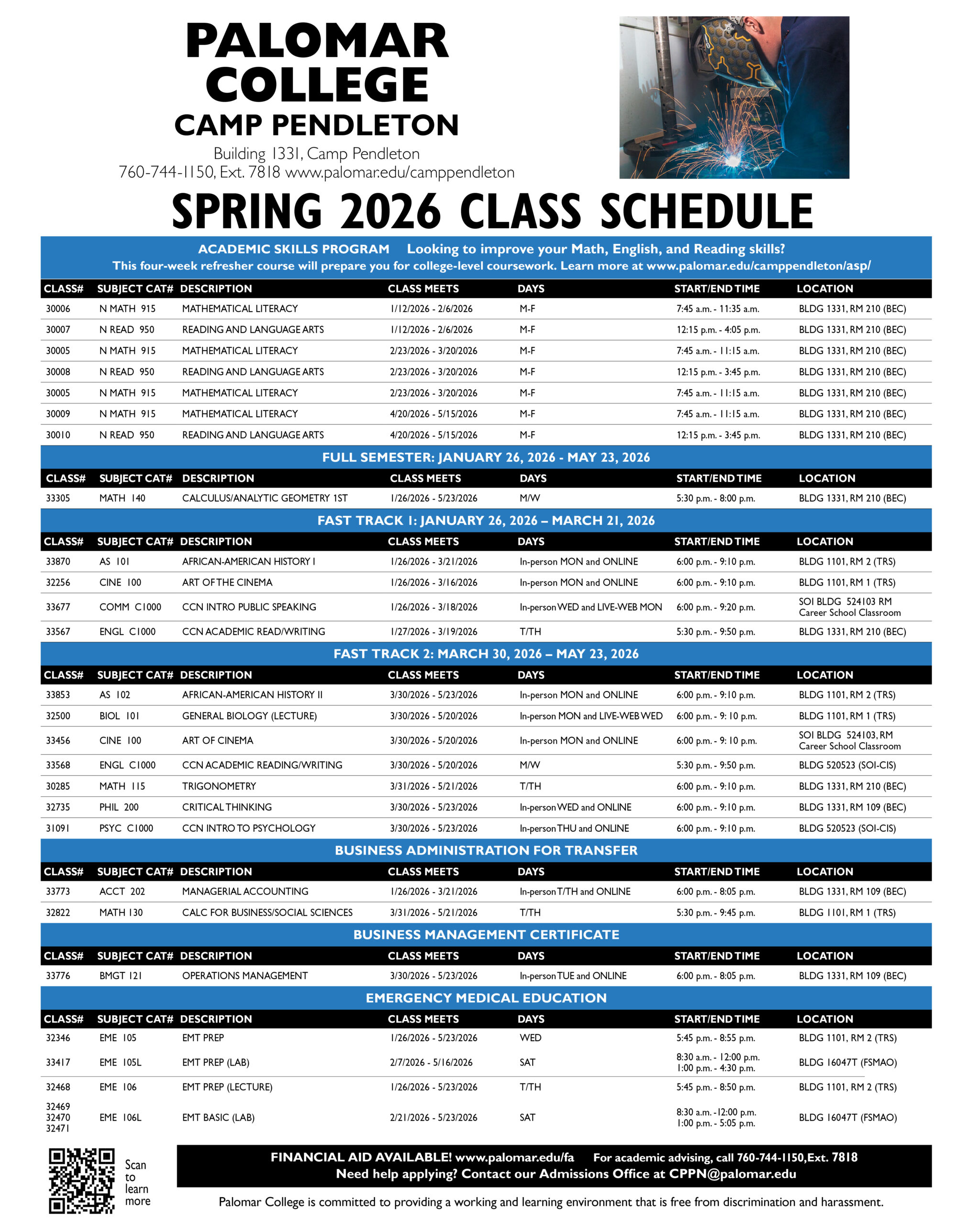 There are multiple ways to fund your education at Palomar College. Visit our Academic Funding page for more information on how to pay for your classes.