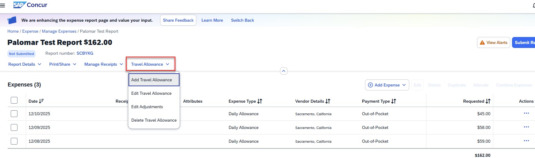 5.16 When ready, click “Submit Report.” The report will route to Accounts Payable (AP) for payment processing.