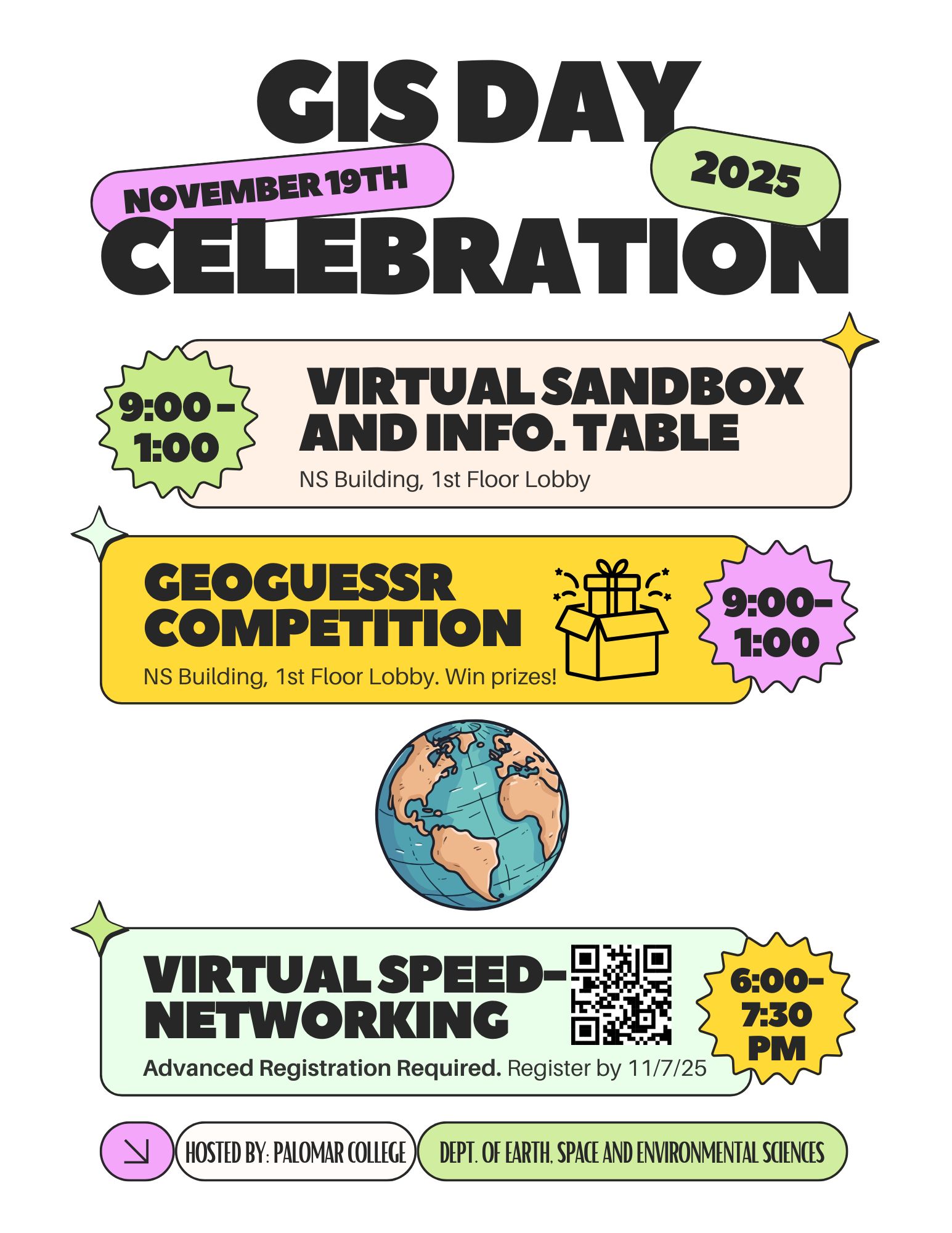 Thank you for your interest in the Geographic Information Systems (GIS) Associate’s Degree and Certificate programs at Palomar College. We are committed to giving you the technical and conceptual knowledge needed to enter this rewarding field. Find out how to get started in the program here. We believe that the program will be invaluable to those who are interested in expanding their career options, and those who are interested in Geography and GIS!