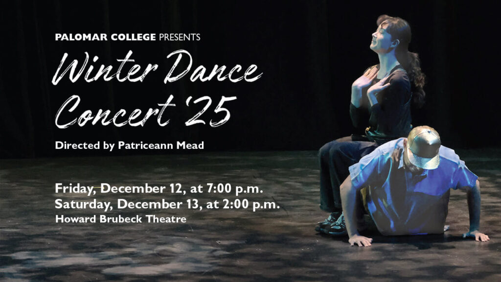 Modern, Ballet, Tap, Jazz, Hip Hop, World Dance, and Musical Theatre forms! Palomar dance students and faculty will warm your heart with outstanding original choreography, with a variety of dance styles and traditions to ring in the holidays.
