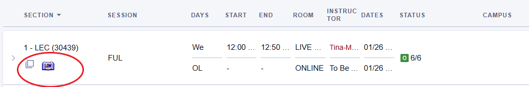 - View the online class schedule to browse class offerings. Select your term (i.e. Spring 2026) from the drop down menu.