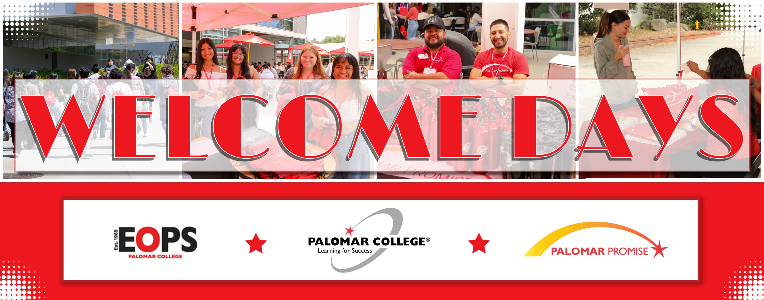 Join us for Welcome Days at Palomar College and get ready to start your college experience this fall! Palomar Promise and EOPS are excited to invite you to the Palomar community with our Welcome Day events. Welcome Days is a great first step to support your successful transition as a new Palomar College student or successful return as a continuing Palomar College student.